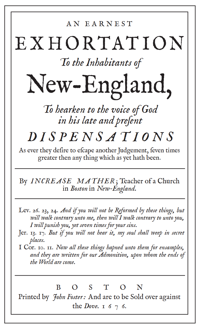 In light of the ‘National Day of Mourning’ tomorrow, I find New England Puritan Increase Mather’s sermon here such an illuminating and worthy rejoinder. As the King Philip’s War (1675-1678) raged, natives attacking English settlements, he leads his contemporaries to probe the source. And it’s no hateful rant against the Indians! (Listen here; read here.)
