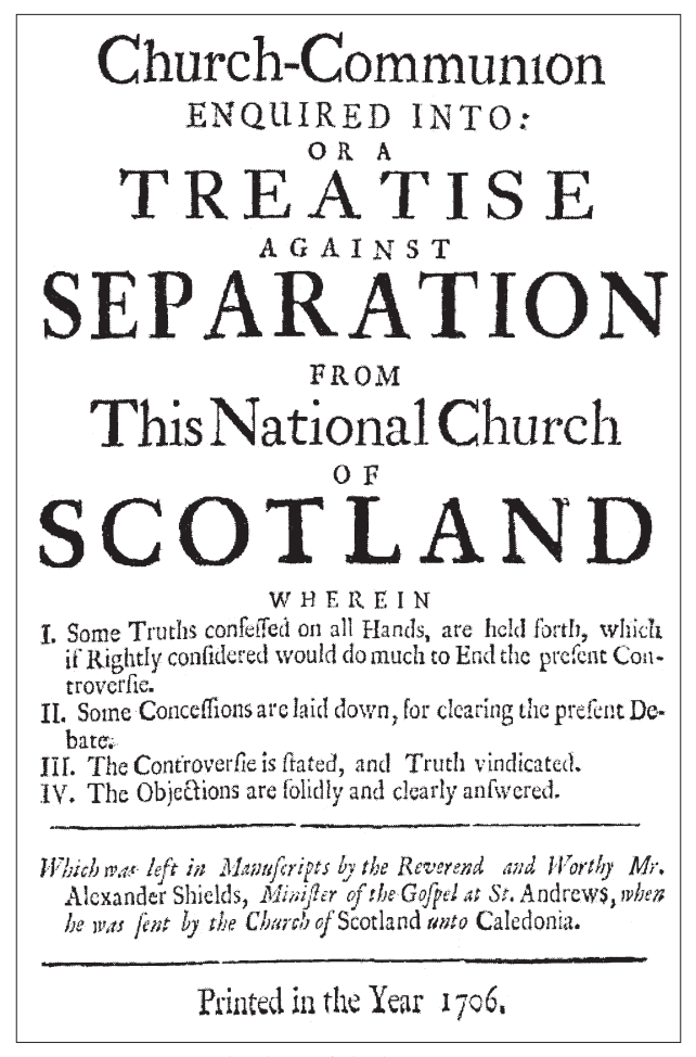 Just finished reading and recording Alexander Shield’s Church Communion Inquired Into (1706). Listen to it here, or read it below. This treatise is such a highwater-mark of classic Presbyterianism, with particular focus on the visible unity of the Church of Christ. It was his heartfelt, pastoral appeal to his brethren who refused to enter the Revolution Church of 1690 on account of its putative corruptions, urging them to reconsider their separation. It is not the easiest of reads, for sure, as it was written in the midst of controversy, among other things. But it is a definitive work on Presbyterian catholicity, right after James Durham’s On Scandal. Here is a very moving appeal from his conclusion: