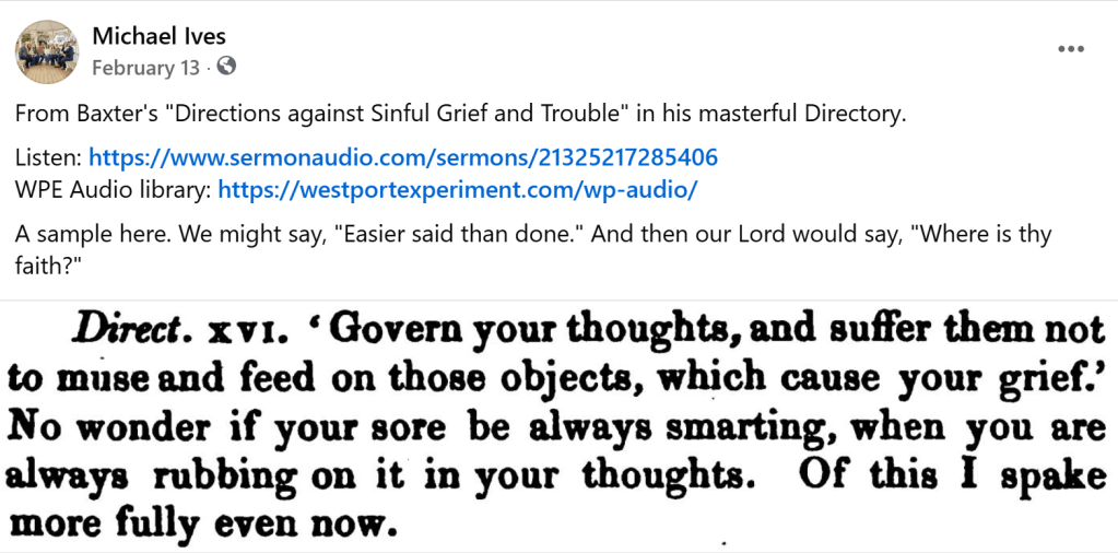 Posted in Christian Life & Experience, Experimental Religion & the Cure of Souls, Ordinary Means Ministry, Vox Patrum on March 18, 2025| Leave a Comment »